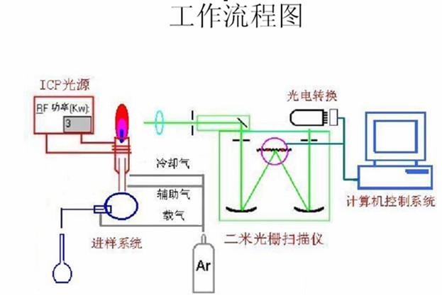 ÈÜÒº½øÈëµÈÀë×ÓÌå¹âÔ´ÖÐÊÜÒý·¢£¬Êͷųö¹â×Ó£¬ÐγɸÃÔªËØµÄÌØÐÔÆ×Ïߣ¬Æ×ÏßµÄÇ¿¶ÈºÍÕôÆûÖÐÔ×ÓµÄŨ¶È³ÉÕý±È£¬½øÐж¨Á¿²â¶¨¡£