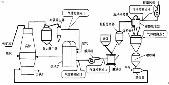 Ò»°ãÀ´Ëµ£¬Ã¿Éú²ú1t´Ö¸ÖÔ¼Ðè2.1¡Á107kJµÄÄÜÁ¿£¬Ô¼Äܱ¬·¢4.2¡Á106kJµÄ¸ßÂ¯ÃºÆø¡¢4.2¡Á106kJµÄ½¹Â¯ÃºÆø¼°1.0¡Á104kJµÄ×ªÂ¯ÃºÆø£¬¸±²úÃºÆøÔ¼Õ¼¸ÖÌúÆóÒµÄÜÔ´×ÜÊÕÈëµÄ30%-40%¡£Òò´Ë£¬ÊµÏÖ¸±²úÃºÆøµÄ½ÓÄÉÔÙÀûÓÿÉÒÔ¼«´óµØ½µµÍ¸ÖÌúÒ±½ð¹¤ÒµµÄ±¾Ç®£¬ÊµÏÖ×ÊÔ´µÄÓÐЧÀûÓ᣶øÃºÆøÊÇ·ñÓнÓÄɵļÛÖµ£¬È¡¾öÓÚÃºÆøÖÐCOµÈÄÜÔ´ÆøÌåµÄŨ¶È£¬COºÍO2ÔÚÏß¼à²âϵͳÊÇÕÉÁ¿ÆøÌåŨ¶ÈµÄÒªº¦¡£